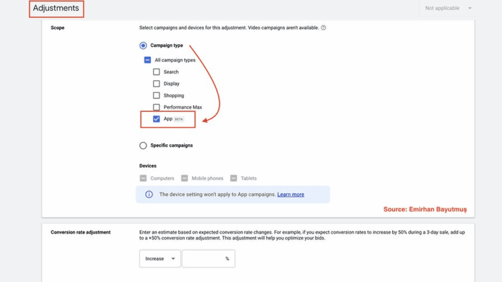 Google Ads rozšířil možnost úprav kampaní na instalaci a zapojení mobilních aplikací. Doposud byly úpravy k dispozici pouze v kampaních Search, Display, Shopping a Performance Max. Tato funkce umožňuje marketérům signalizovat očekávané změny v mírách konverze, například během výprodejů nebo akcí. Novinku sdílel Emirhan Bayutmuş.
