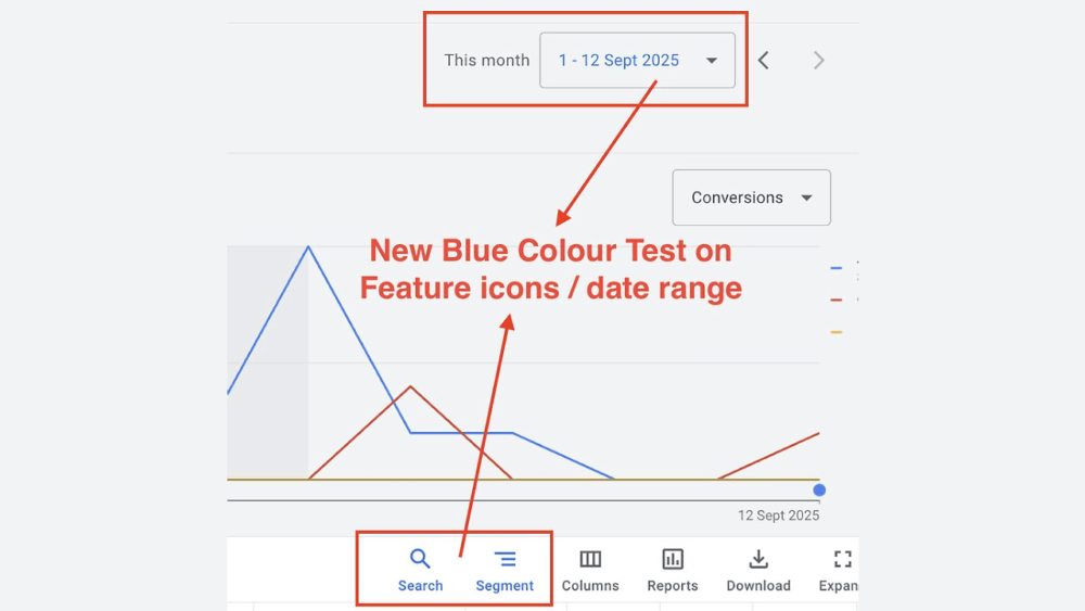 Google Ads tiše aktualizoval uživatelské rozhraní pro některé uživatele, kde testuje úpravu barvy textu z původní černé na modrou. Test byl zachycen u výběru časového období a také u ikon v menu v záhlaví hlavní tabulky. Novinka byla sdílena Saquibem Syedem.