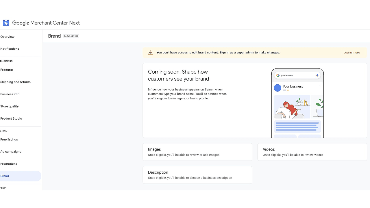 Poprvé oznámené na Google Marketing Live 2024, Brand Profiles umožňují obchodníkům zvýraznit prvky jako hodnoty značky, kategorie produktů a popisy podnikání v dedikované sekci.