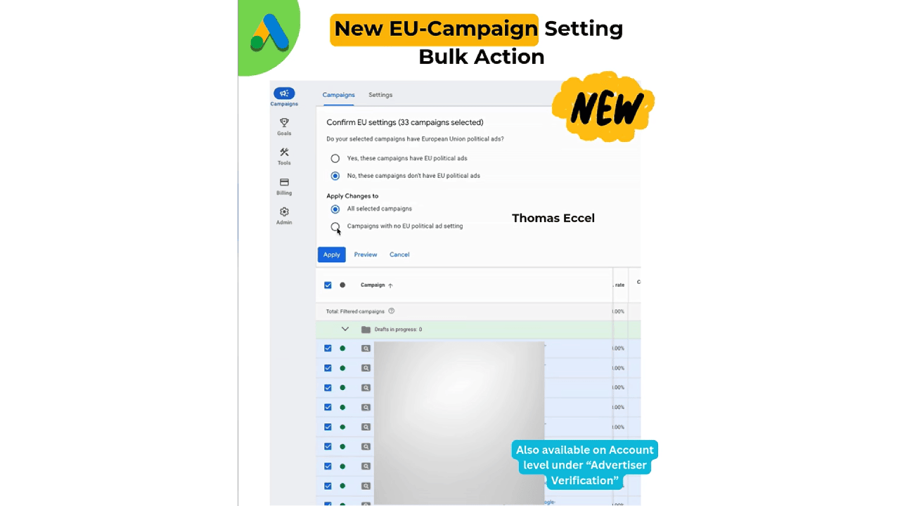 Jednou z nově přidaných možností, kterou zachytil Thomas Eccel, je kampaně označit a z nabídky vybrat “Potvrdit nastavení pro EU“.