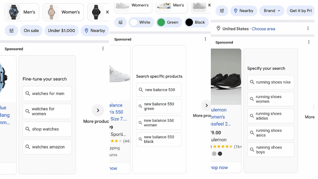 Google testuje možnosti upřesnění vyhledávání uvnitř sponzorovaných reklam ve formátu Shopping ads. Možnosti zahrnují výzvy jako „doladit své vyhledávání“, „upřesnit své vyhledávání“ a „hledat konkrétní produkty“.