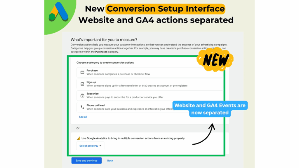 Google Ads zavedl přepracovaný systém nastavení konverzí, který vizuálně odděluje konverze pro weby a Google Analytics 4. Inzerenti nyní uvidí dvě jasné volby při vytváření nové konverzní akce: konverze webových stránek, které se vytvářejí ručně prostřednictvím GTM nebo globálního tagu stránek, a GA4 importy, které se zobrazí pouze, pokud je propojena nemovitost GA4. Novinku sdílel Thomas Eccel.