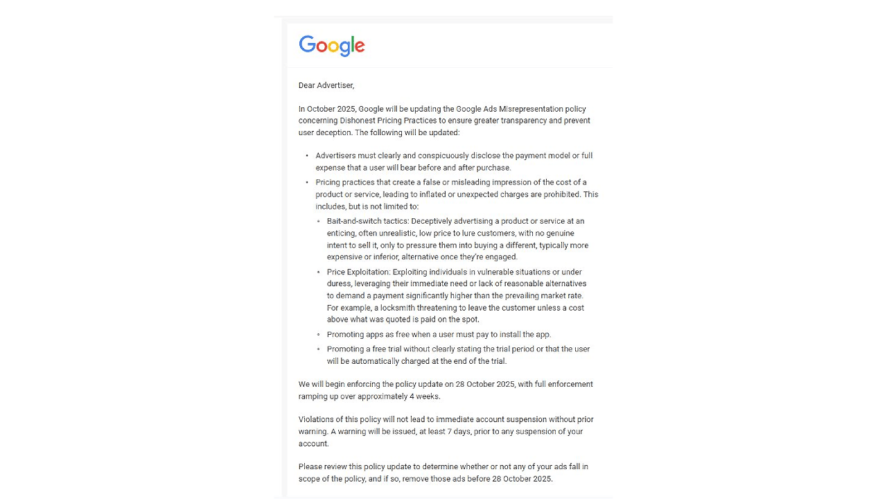 Od 28. října 2025 začne Google uplatňovat přísnější pravidla ohledně transparentnosti cen. Novinku sdílela Natasha Kaurra.